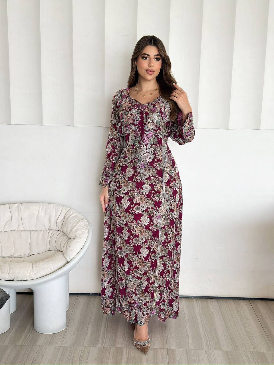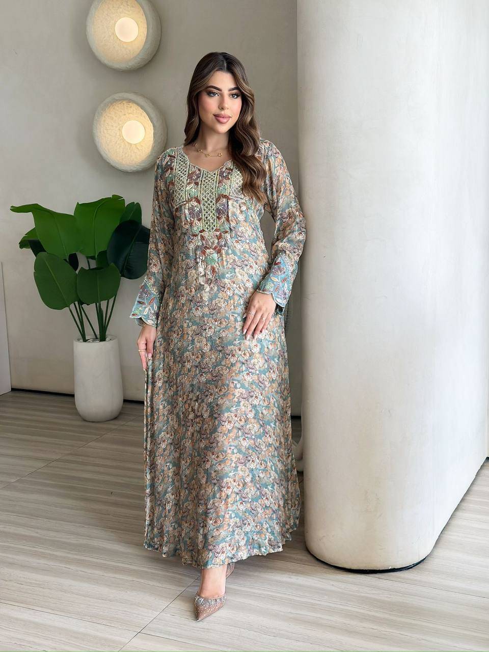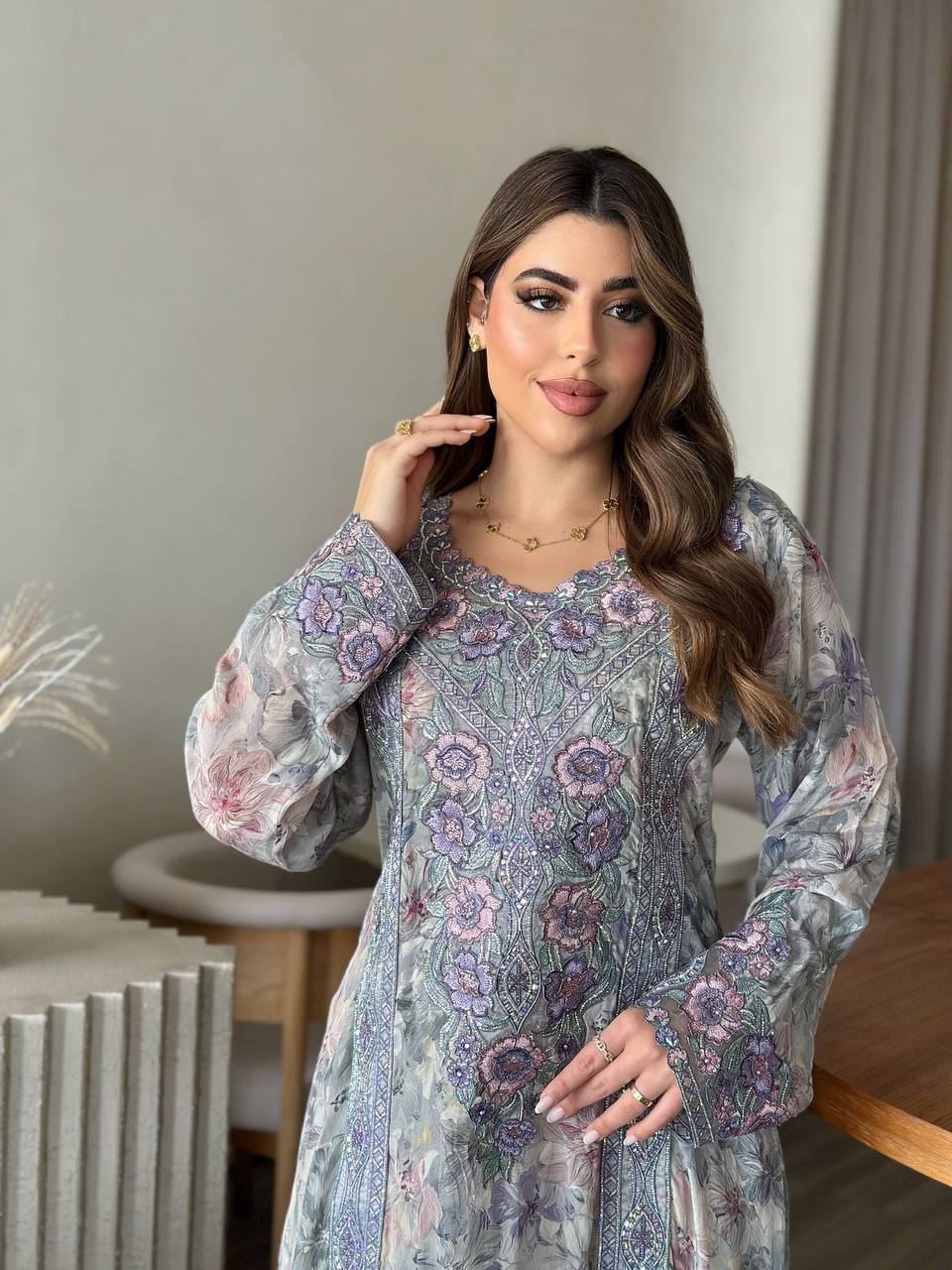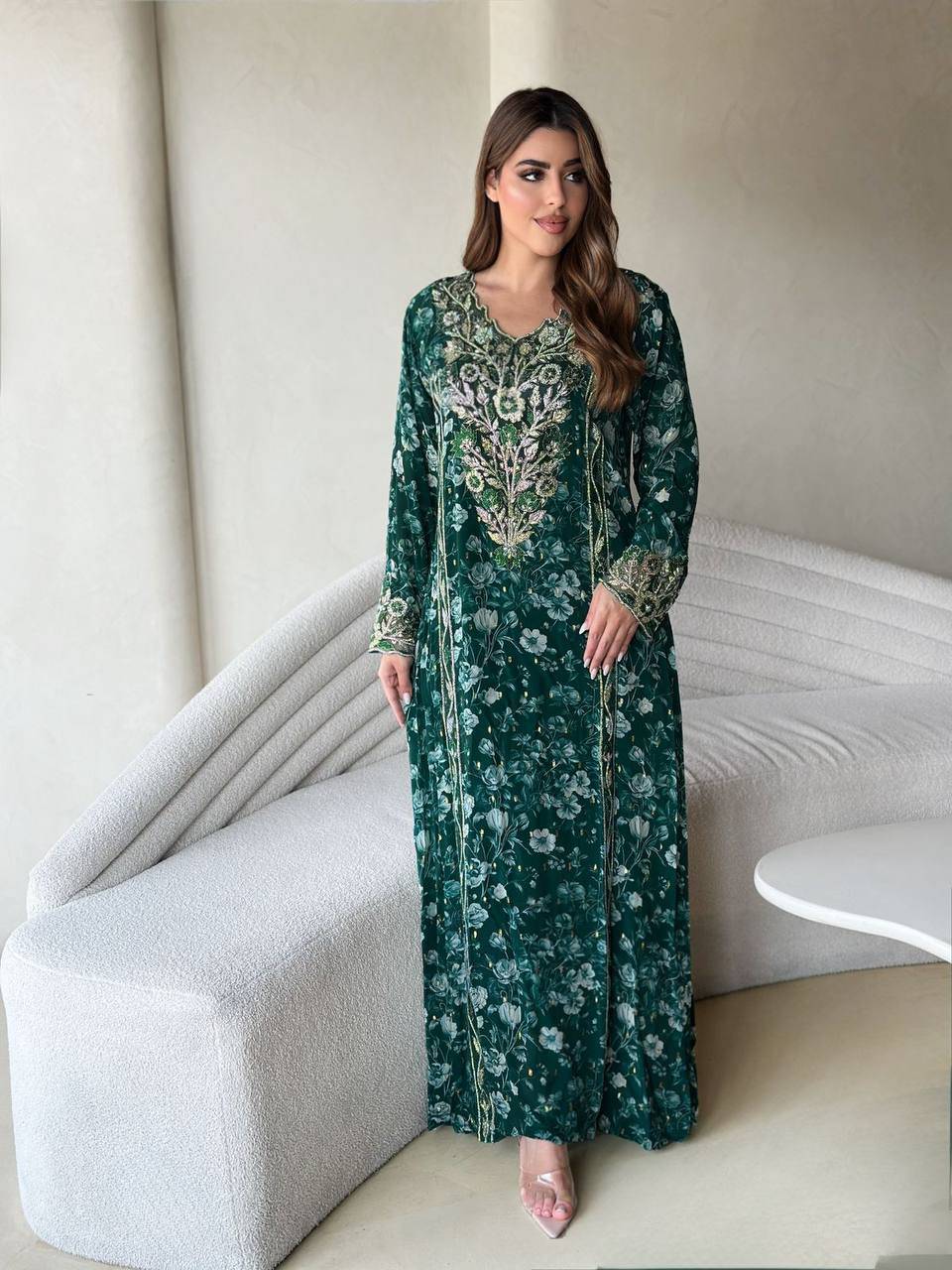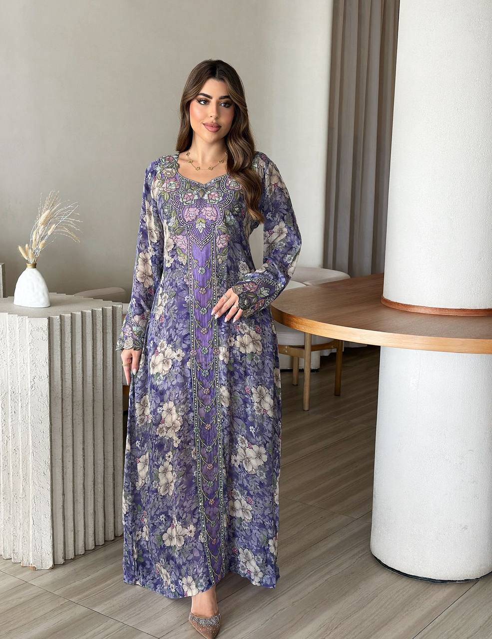 مخور فاخر من الحرير الإيطالي بتطريز يدوي فاخر وكريستال أصلي يمنحك إطلالة ملكية أنيقة