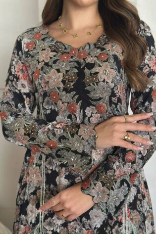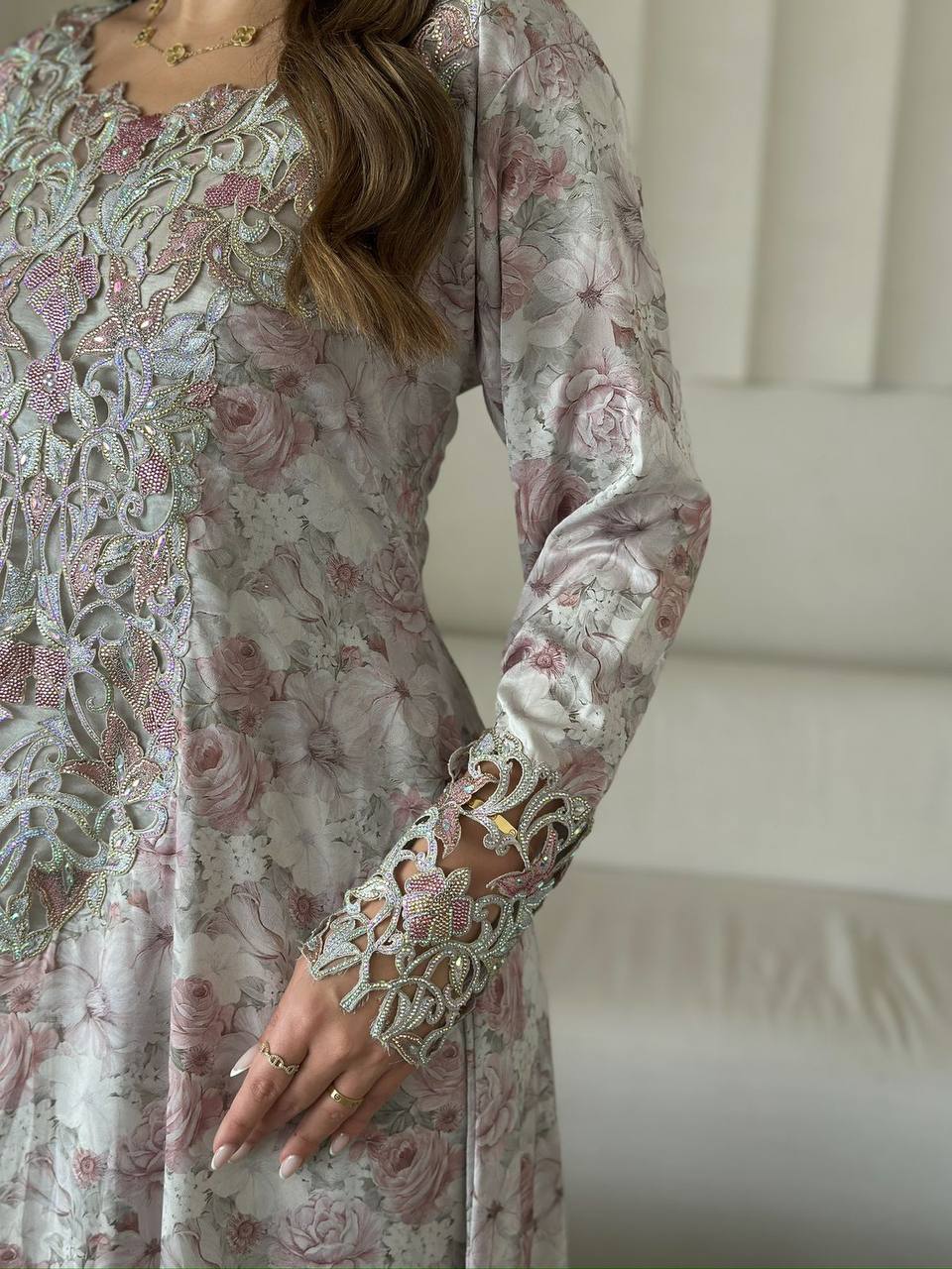 حرفة يدوية متقنة: يتميز بتطريز يدوي فاخر تم تنفيذه بدقة متناهية ليجعل منك أيقونة للجمال في كل مناسبة.